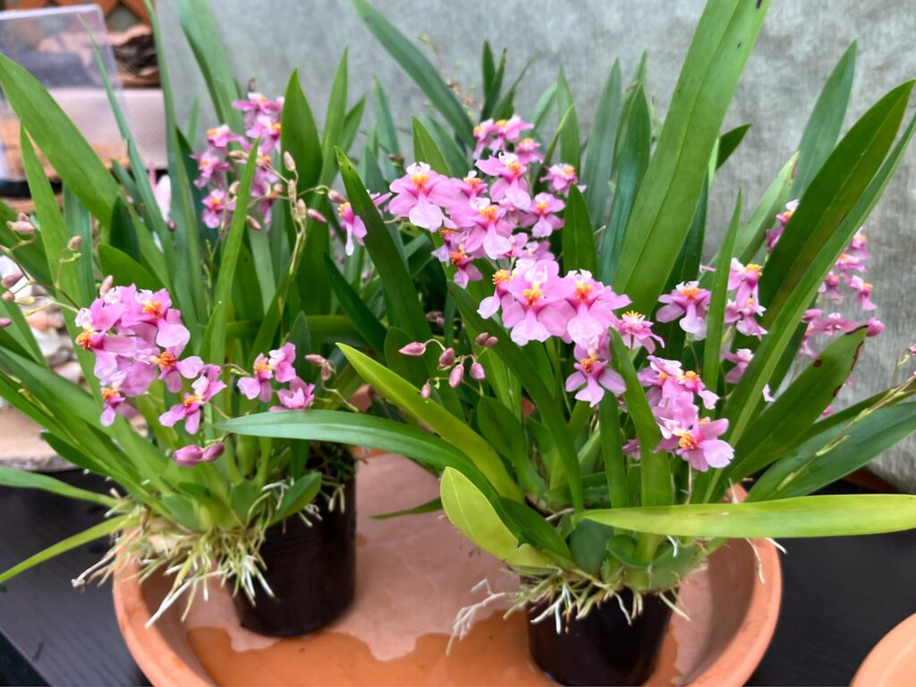 フラワーショップ蘭らん店頭で、甘い香りのオンシジュームトゥインクルが咲き始めています。