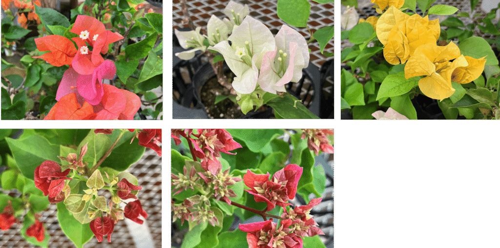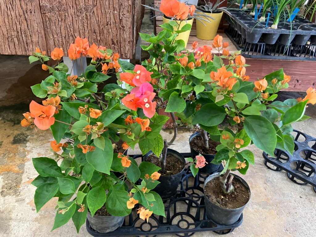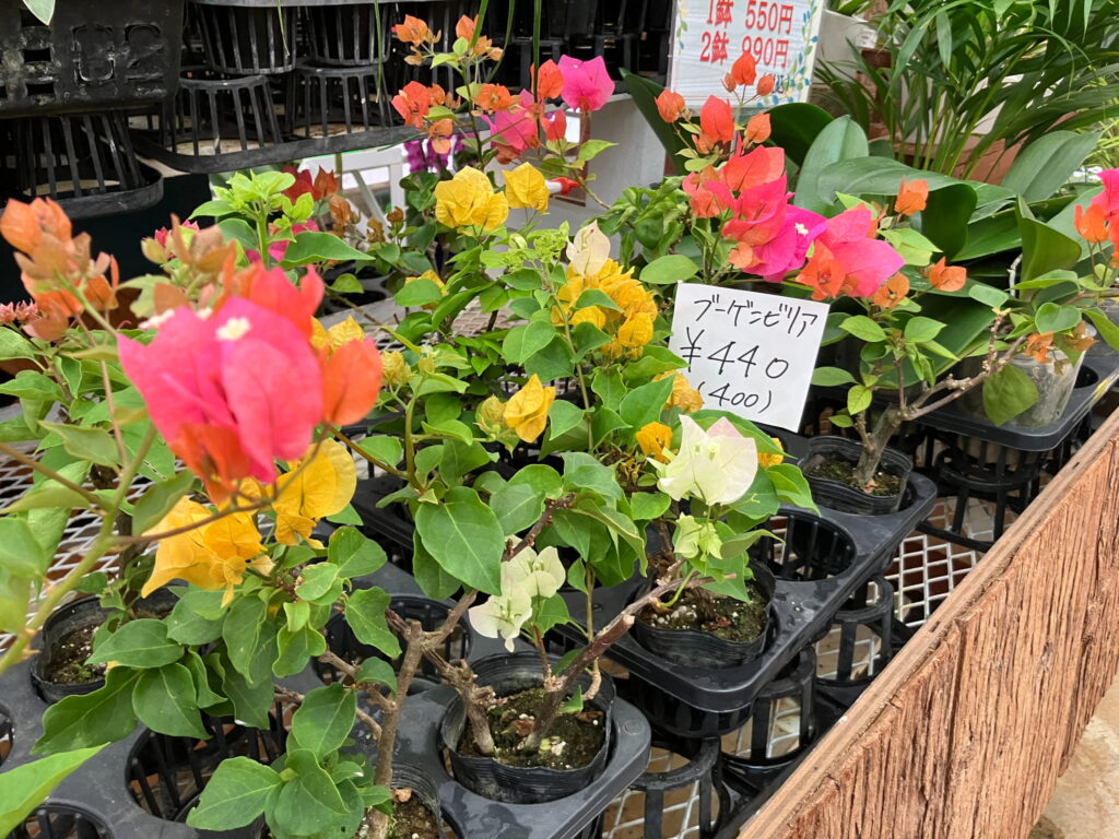 今、店頭では沖縄らしい色とりどりのブーゲンビレア(生産苗)販売中です。