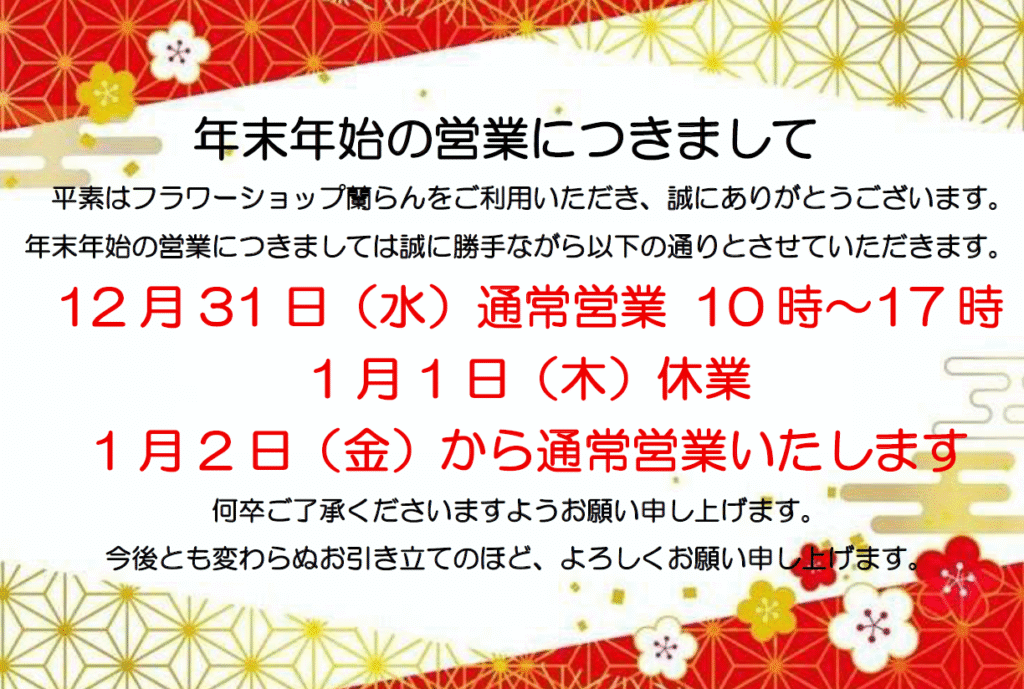 今年もフラワーショップ蘭らんをご愛顧いただき、ありがとうございます。