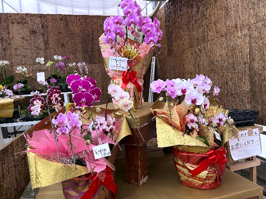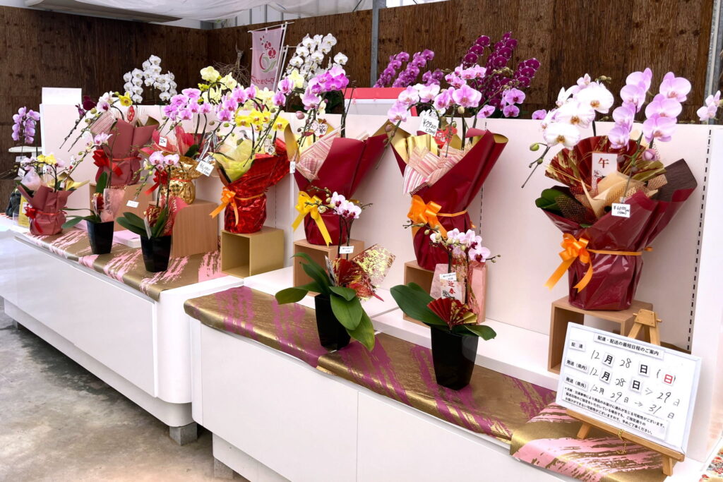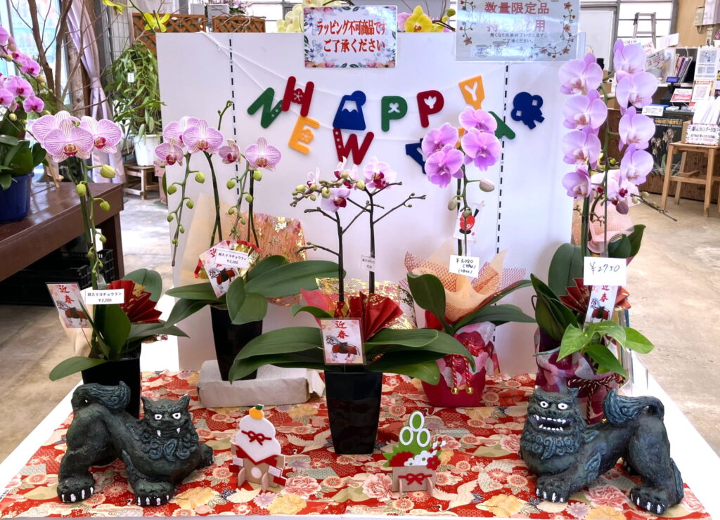 お正月に向けて、迎春ラッピングの胡蝶蘭が店頭に並び始めました。
