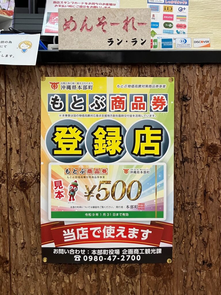 もとぶ商品券 (もとぶ物価高騰対策商品券) は、当店でもご利用いただけます。