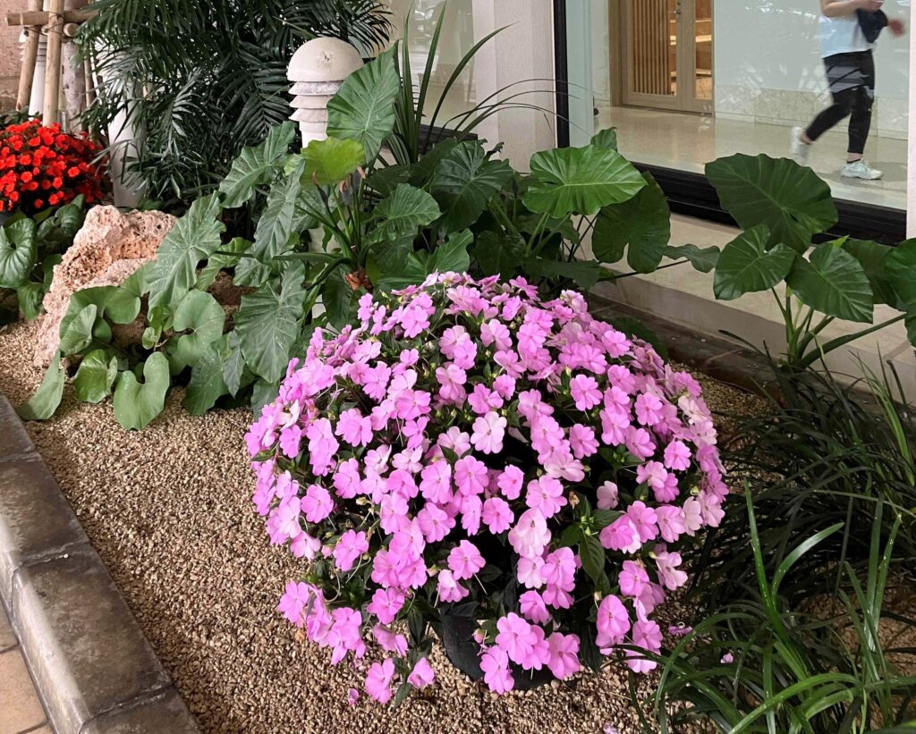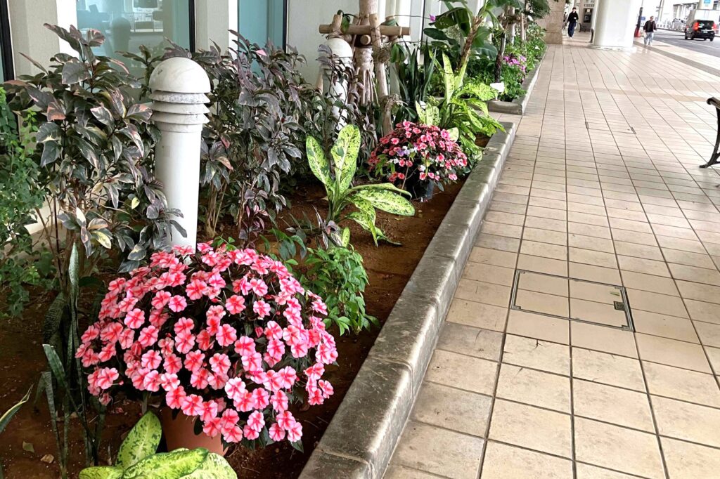 那覇空港玄関を彩るサンパチェンス