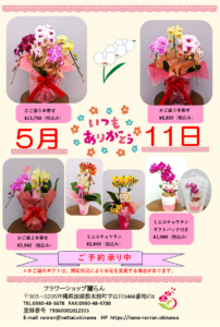 ランのことなら蘭らんへ~♪ 今年の母の日は、5月11日です。お母さんに感謝の気持ちを伝えよう! お母さんへ、日ごろの感謝をを込めて、一緒にごはんを食べたり、おしゃべりしたり一緒に過ごしたり、プレゼントなど、予定を立ててい […]